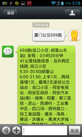 例如线路查询:厦门公交92路