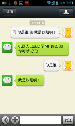用手机直接发送:问 关键词 答 内容,这样教机器人回答问题,机器人就学会了。